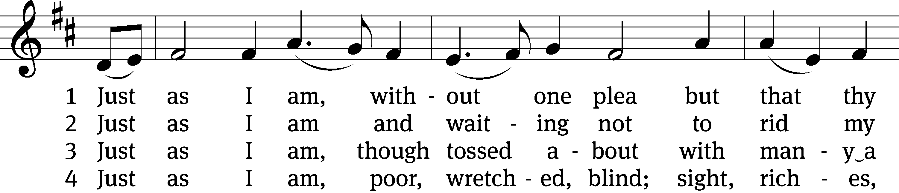 Opening Hymn: 814 Just as I Am, without One Plea
